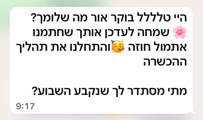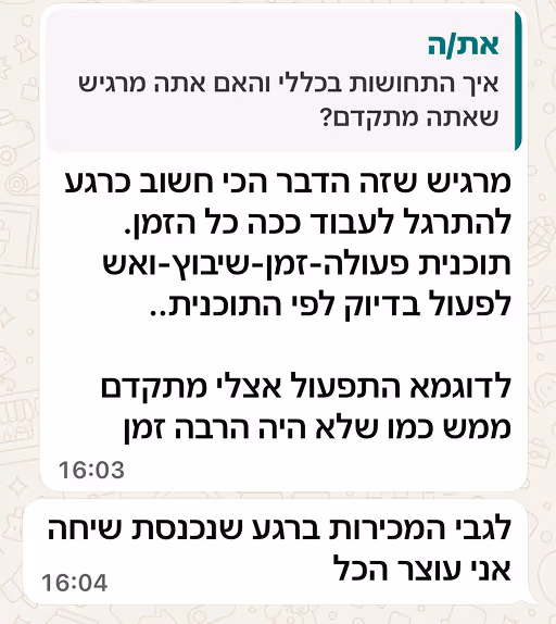 לכל אורך התהליך אני מלווה אותך יד ביד.